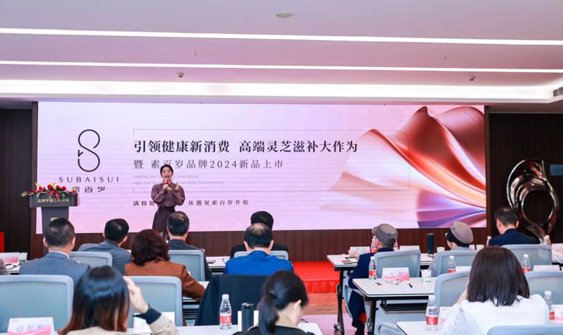 在峰会现场,素百岁品牌的新品发布吸引了众多与会者的目光。素百岁品牌营销总监张晓霞以“素百岁,你的健康底气”为话题,阐明素百岁品牌定位和理念,并向与会嘉宾隆重发布《引领健康新消费 高端灵芝滋补大作为暨素百岁2024年新品上市》系列全新产品。