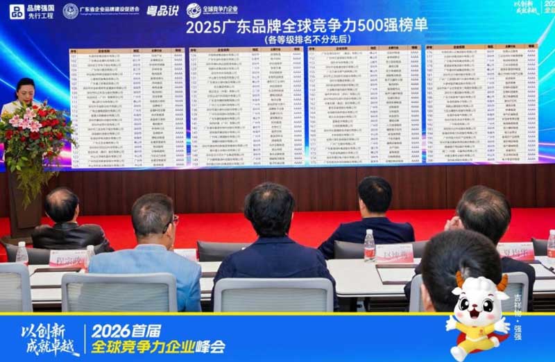 日前,由品牌强国先行工程组委会与广东省企业品牌建设促进会联合主办的2026首届全球竞争力企业峰会在广东品牌创新培育基地开幕。据悉,峰会以“中国品牌全球崛起”为核心主题,发布《2025广东品牌全球竞争力500强报告》、揭晓500强及首批“全球竞争力企业”名单,同步启动多项企业品牌全球化赋能计划,吸引了来自全国各地的100多名品牌专业人士与优秀企业家参加。