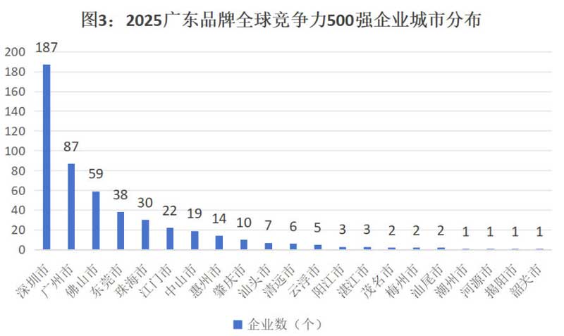 此外,东莞(38家)、珠海(30家)、中山(19家)、江门(22家)等珠三角城市均有超10家企业上榜,粤东西北地区汕头(7家)、云浮(5家)、湛江(3家)、阳江(3家)、汕尾(2家)、茂名(2家)、梅州(2家)和潮州、揭阳、河源、韶关各有1家入选,形成全域协同发展格局。