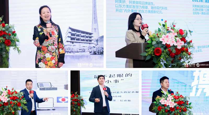 在品牌创新发布环节,广州市迪彩化妆品有限公司董事长许桂萍分享了迪彩28年专注东方发用品的创新历程,以“自然养、平衡美”为哲学根基,让世界爱上中国护发品牌;兰兮月生物科技首席品牌官黄圆则讲述了阿美妍从原料溯源到品质坚守的实践,秉持“内调外养”东方理念,将生物科技与草本精华融合,以国宾礼认证品质诠释国货之光;江门长华集团有限公司副总经理李向波分享了企业以技术创新驱动品牌出海,构建全流程品控体系,以自主技术实力助推“长华摩托从中国驶向世界”的品牌愿景;广东奇辉箱包有限公司总经理刘真玮自豪地分享了“20天1800个定制行李箱”——为第十五届全国运动会广东代表团量身打造专属装备的品牌故事;广东优凯科技有限公司副总经理邓奔奔则分享了从代工制造到自主品牌国际化拓展的成功案例,其产品已稳定出口至全球40多个国家和地区。
