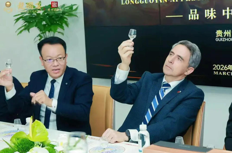 活动现场,侍酒师依次呈上龍國宴·龙脉15、龍國宴·龙脉30及龍國宴·九五至尊30三款核心产品。王满平会长及众嘉宾对龍國宴酒给予高度评价,罗森·普列夫内利耶夫先生对品鉴仪式给予高度赞许,他称道:“虽然喝过很多中国白酒,但这是第一次以专业方式品鉴中国美酒,历经时间沉淀,风味愈加醇厚。”