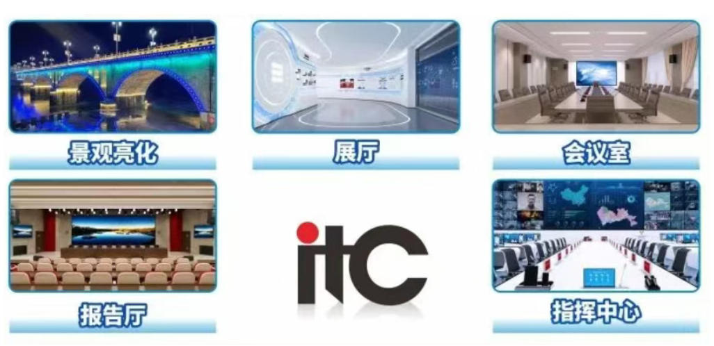 数十年来itc致力于声、光、电、视讯系统的研发和生产,共拥有覆盖公共广播、数字会议、无纸化会议、视频会议、专业扩声、云会务、中央控制、高清矩阵、录播系统、分布式综合管理信息平台、LED显示屏、舞台灯光、景观照明等全系列自主知识产权和自主品牌的声光电视讯系统。如今,itc品牌广泛应用于国防、军队、医疗、政府机关、消防、交通、监狱、教育、企业单位、文体场馆、金融、地产、能源制造、宾馆酒店、超市商场、公园广场、平安城市等行业个性化、数字化、信息化建设,在国内与国际市场品牌美誉度日益提升。