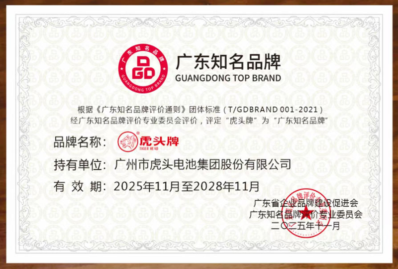 广东知名品牌是广东经济的名片,是广东品牌争创国际领先、消费者信赖、文化鲜明的一个综合性品牌评价。在各界嘉宾的共同见证下,广州市虎头电池集团股份有限公司旗下品牌“虎头牌”凭借卓越的技术创新力与市场领导力获评“广东知名品牌”。