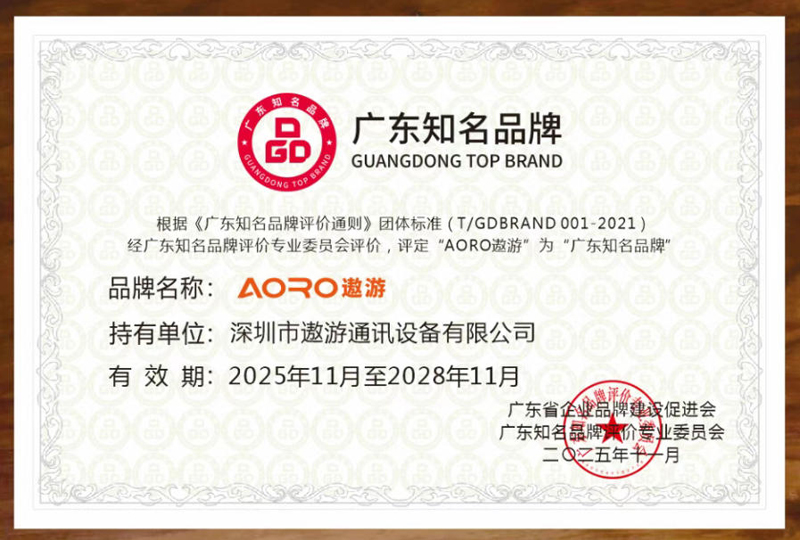 广东知名品牌是广东经济的名片,是广东品牌争创国际领先、消费者信赖、文化鲜明的一个综合性品牌评价。在各界嘉宾的共同见证下,深圳市遨游通讯设备有限公司旗下品牌“AORO遨游”凭借卓越的技术创新力与市场领导力获评“广东知名品牌”。