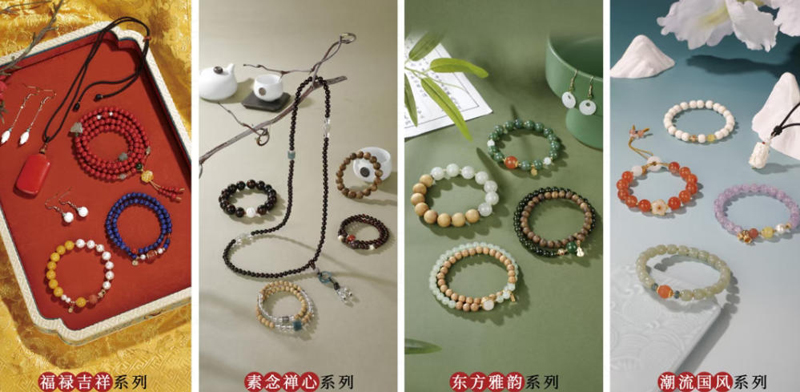 沁珠宝每一件作品都渗透着东方美学的巧思,原创产品系列福禄吉祥、东方雅韵、素念禅心、潮流国风等,或华贵、或雅致、或禅意、或国潮,既保留东方韵味又适配日常穿搭,满足不同消费者的多样化需求。二十四节气手串,更是将“春分新绿” 的生机、“冬至赏雪” 的静谧等节气意境融入珠宝设计,让消费者佩戴时能直观感受传统文化之美。