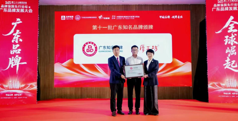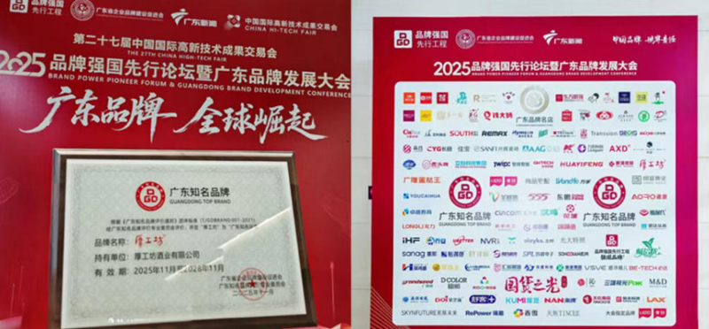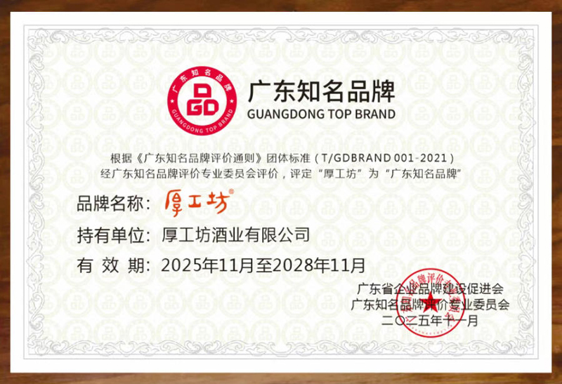 广东知名品牌是广东经济的名片,是广东品牌争创国际领先、消费者信赖、文化鲜明的一个综合性品牌评价。在各界嘉宾的共同见证下,厚工坊酒业有限公司旗下品牌“厚工坊”凭借遵承地道传统古法造与市场领导力获评“广东知名品牌”。