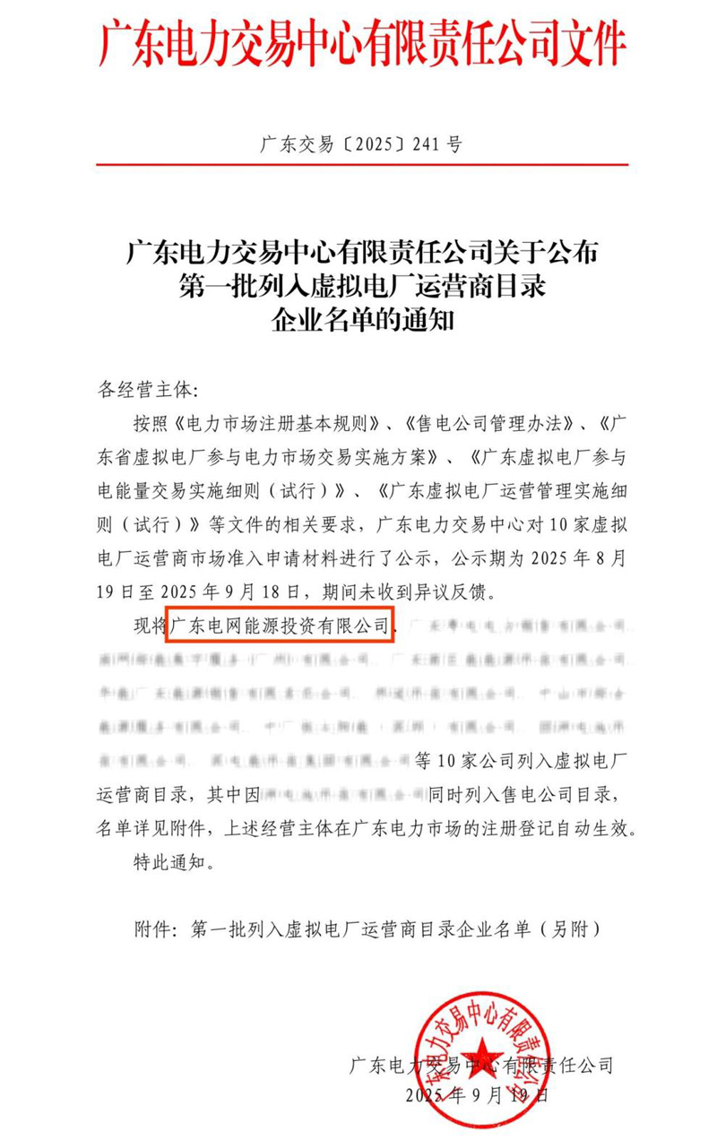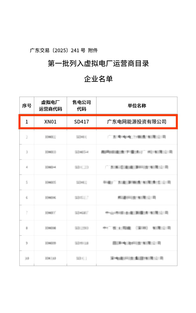 2025年7月,广东电力交易中心与广东电网负荷管理中心受理了广东省第一批虚拟电厂运营商注册。